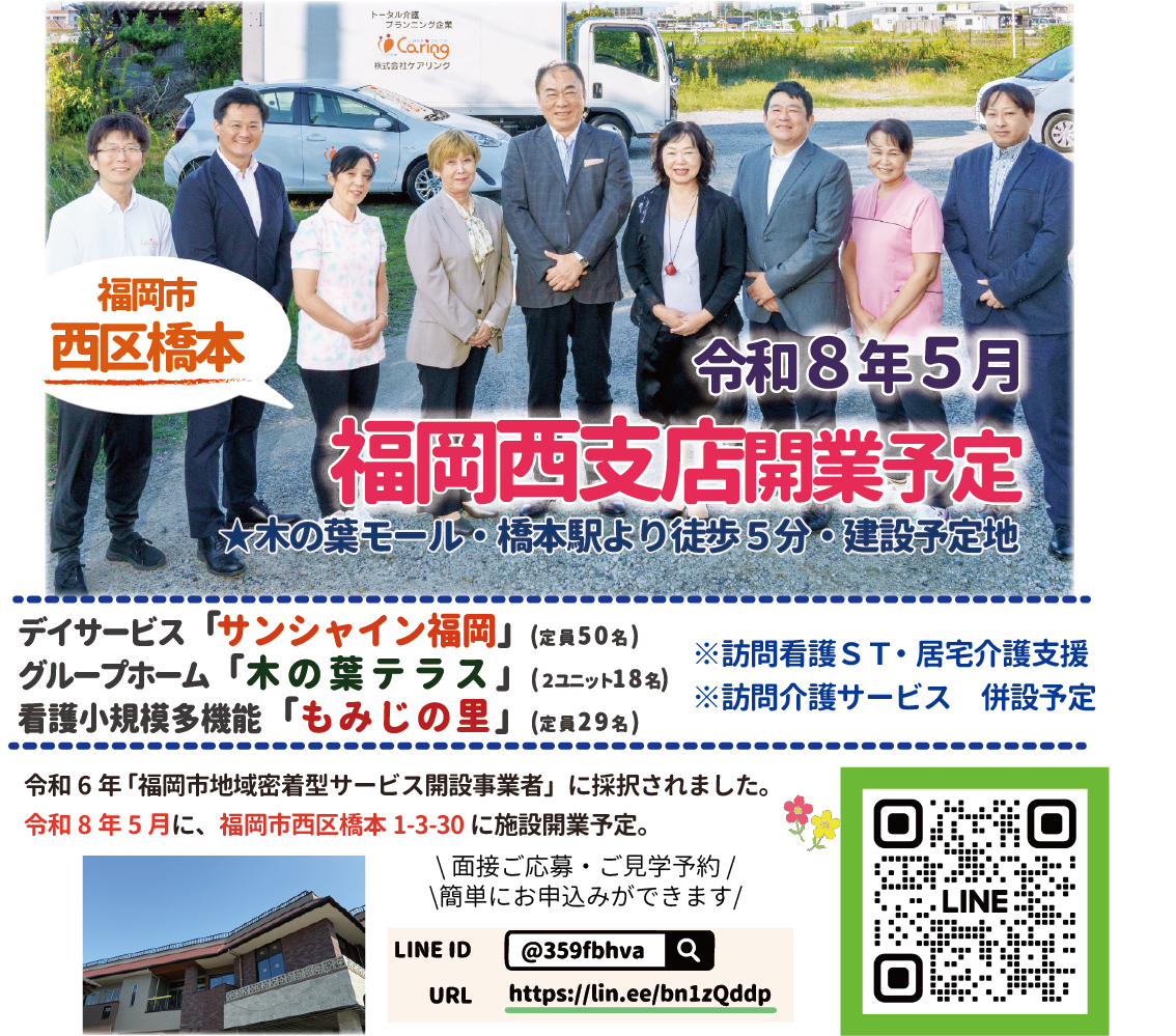 福岡の介護施設なら、福岡を中心に北九州市、大分県中津市まで展開するケアリングへ