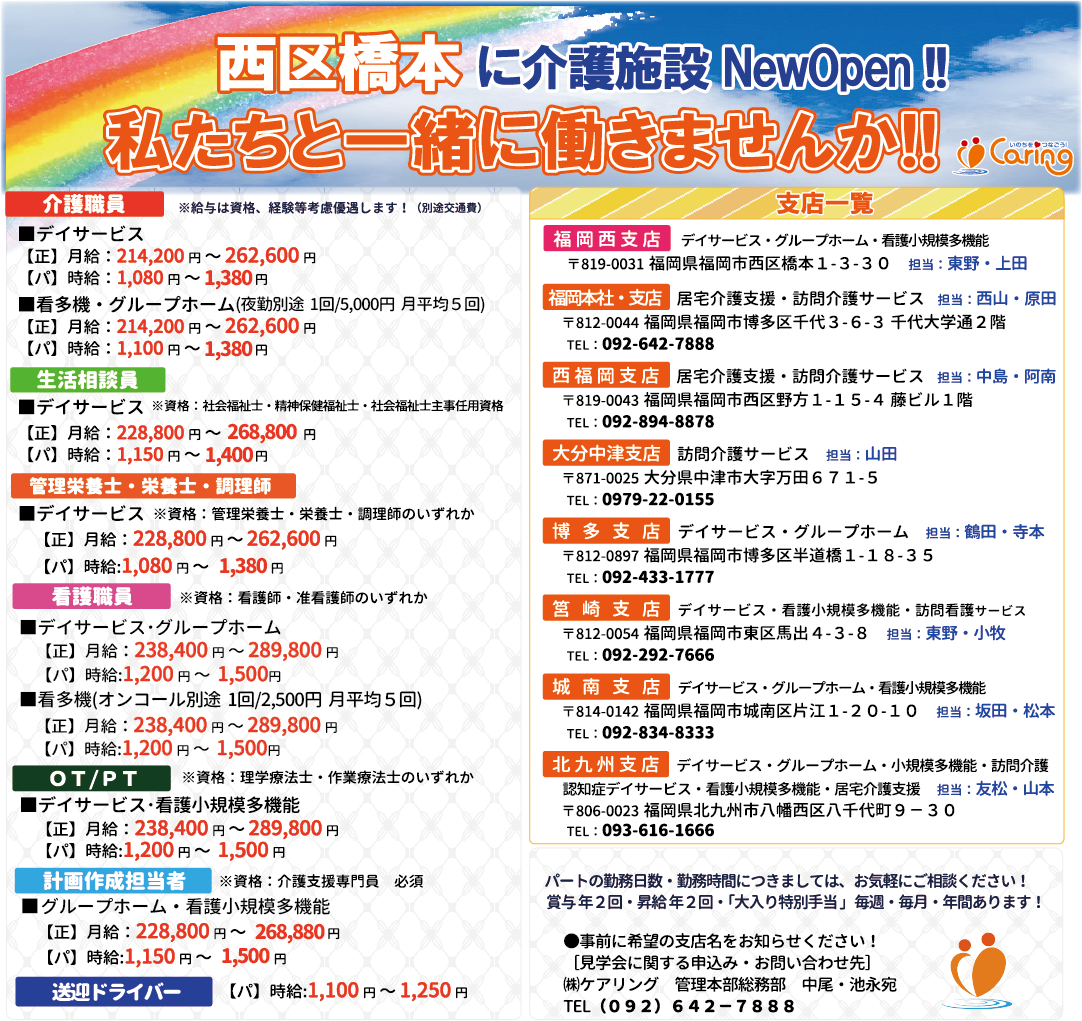 HOME >  【2026年5月開設】福岡西支店オープニングスタッフ募集のお知らせ🌸